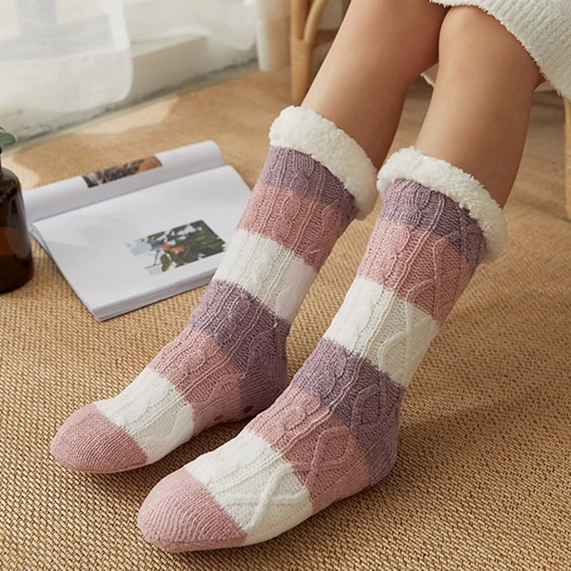 Plongez vos pieds dans un nuage de douceur avec ces chaussettes chaudes femme antidérapantes torsades. Comme une étreinte moelleuse, la peluche blanche à l’intérieur promet une sensation de chaleur et de confort, enveloppant délicatement chaque orteil et transformant chaque pas en un doux voyage.