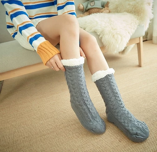 Plongez vos pieds dans un océan de douceur avec nos chaussettes chaudes femme unies antidérapantes, une invitation à la relaxation. Oubliez le froid hivernal et enveloppez-vous de cette sensation unique, une véritable caresse pour vos pieds.