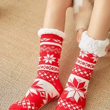 Mêlant le rouge profond des fêtes à la blancheur pure de la neige fraîchement tombée, ces chaussettes de Noël fourrées rouge flocon sont un véritable hommage aux couleurs de Noël. Le gros flocon en avant-scène capte instantanément le regard, faisant de vos pieds les stars de la saison.