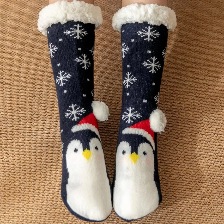 Laissez-vous charmer par le détail pétillant de ces chaussettes de Noël pingouin pompon : le bonnet du pingouin est orné d’un pompon espiègle qui pend délicatement, évoquant la fantaisie des étendues glaciaires où ces créatures espiègles évoluent avec grâce.