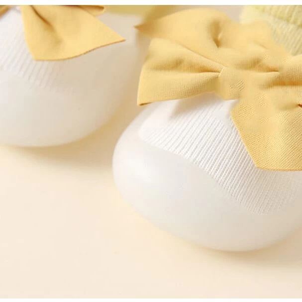 Ces chaussons bébé fille sont conçus pour allier confort et élégance. Réalisés en coton doux, ils présentent un charmant noeud papillon sur le dessus, ajoutant une touche féminine. Disponibles en six couleurs douces, ils s’assortiront facilement aux tenues de votre petite.