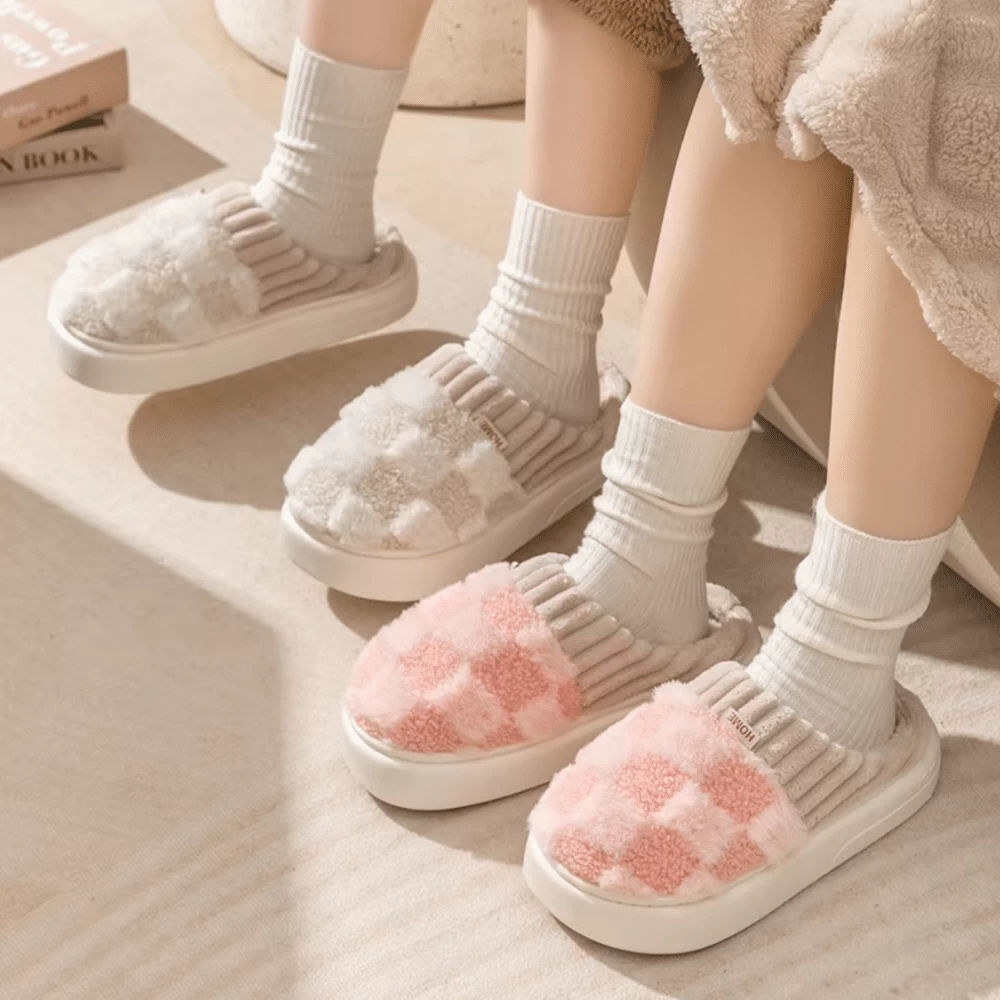Les chaussons femme Checkerboard ne sont pas seulement doux, ils sont aussi pratiques ! Leur semelle en caoutchouc antidérapante garantit une adhérence parfaite sur tous types de sols. Que ce soit pour vous déplacer dans la maison ou descendre rapidement les escaliers, vous êtes toujours en sécurité et stable. Adieu les glissades imprévues !