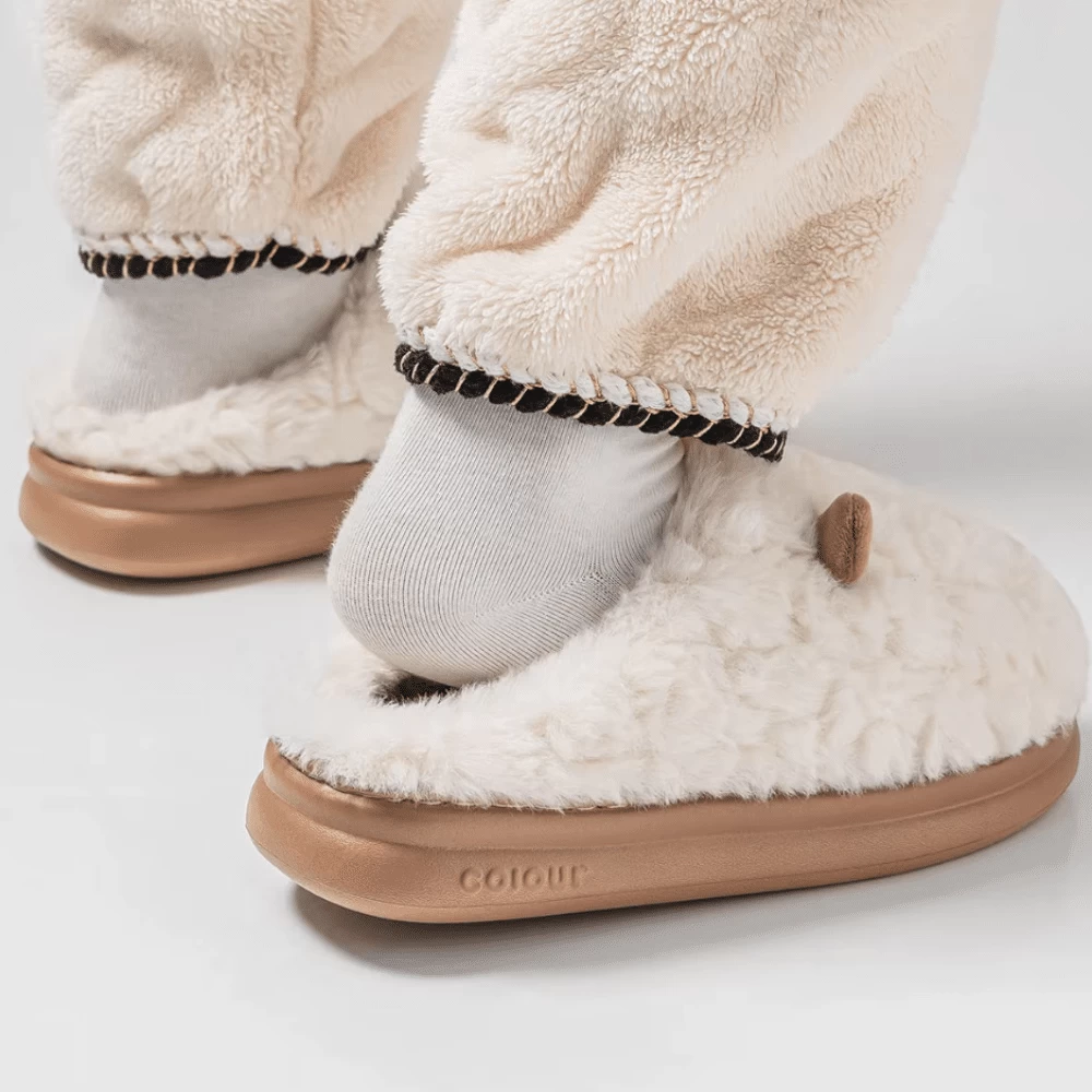 Pour les amateurs de confort, ces chaussons cocooning ont une caractéristique distincte : les semelles en caoutchouc épaisses. Non seulement elles fournissent un amortissement supplémentaire, mais elles offrent également une stabilité et une durabilité remarquables. C’est une plateforme de confort qui vous soutient tout au long de la journée.