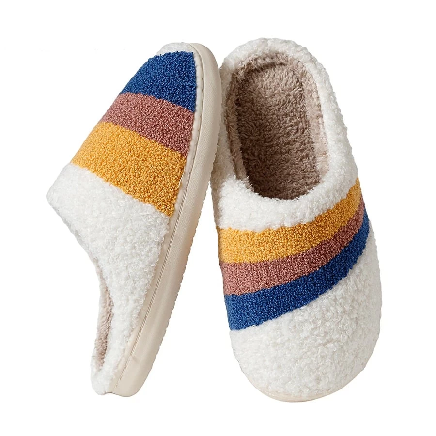 Les pantoufles homme Confort arc-en-ciel se distinguent par leur conception asymétrique originale. Les trois bandes de couleurs qui s’étendent d’un chausson à l’autre créent un motif continu d’arc-en-ciel, offrant une touche artistique et poétique. Ces chaussons sont parfaits pour ceux qui cherchent à ajouter une pointe de fantaisie à leur tenue d’intérieur.