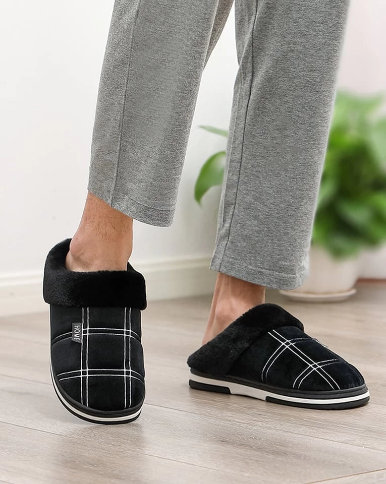 Les pantoufles homme fourrées carreaux offrent un look intemporel avec leur design aux grands carreaux dessinés par une fine ligne blanche. Disponibles en gris foncé, marron et noir, ces chaussons s’adapteront élégamment à votre style décontracté tout en évoquant un sentiment de chaleur et de confort.