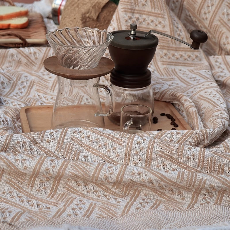 D’une main habile est né un labyrinthe de motifs entrelacés, chaque courbe et tournant rappelant les échos d’une époque révolue, tout en restant résolument moderne. Blanc neigeux ou beige crémeux, ce plaid raconte une histoire, un récit intemporel d’élégance et de charme. Il est un dialogue entre le passé et le présent, une danse visuelle qui stimule l’œil tout en apaisant l’âme.
