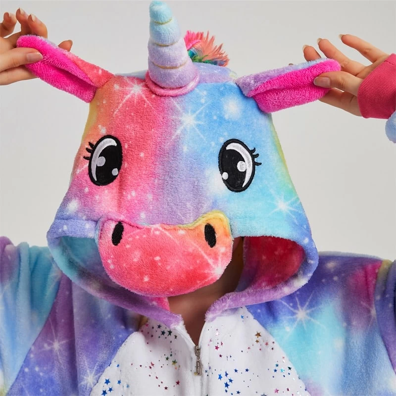 Et que serait cette aventure galactique sans notre fidèle licorne pour servir de guide ? La tête de la licorne sur la capuche est votre monture enchantée, prête à vous emporter vers des mondes oniriques inexplorés. Avec ce kigurumi, la voie lactée n’est plus la limite, c’est le point de départ ! Transformez chaque nuit en une odyssée de rêves. Où la magie et le cosmos se rencontrent, le sommeil devient un voyage étoilé.