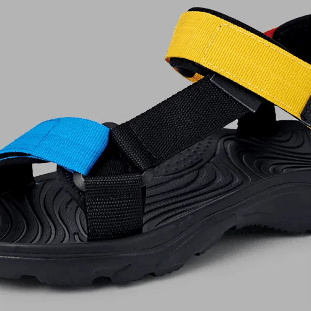 Plongez dans un monde où le confort rencontre la couleur avec les sandales Don’t Stop Me Colour. Avec leurs lanières audacieuses en bleu, rouge et jaune, ces sandales ajoutent une touche de vivacité à votre garde-robe d’été. Leur conception assure un maintien parfait et une aisance inégalée, idéale pour ceux qui veulent allier style et confort.